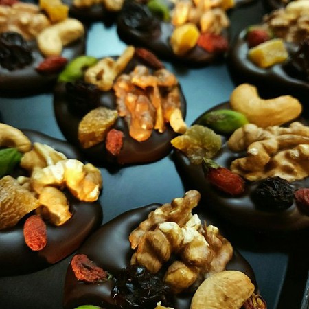 onze homemade ambachtelijke chocolade proeft.